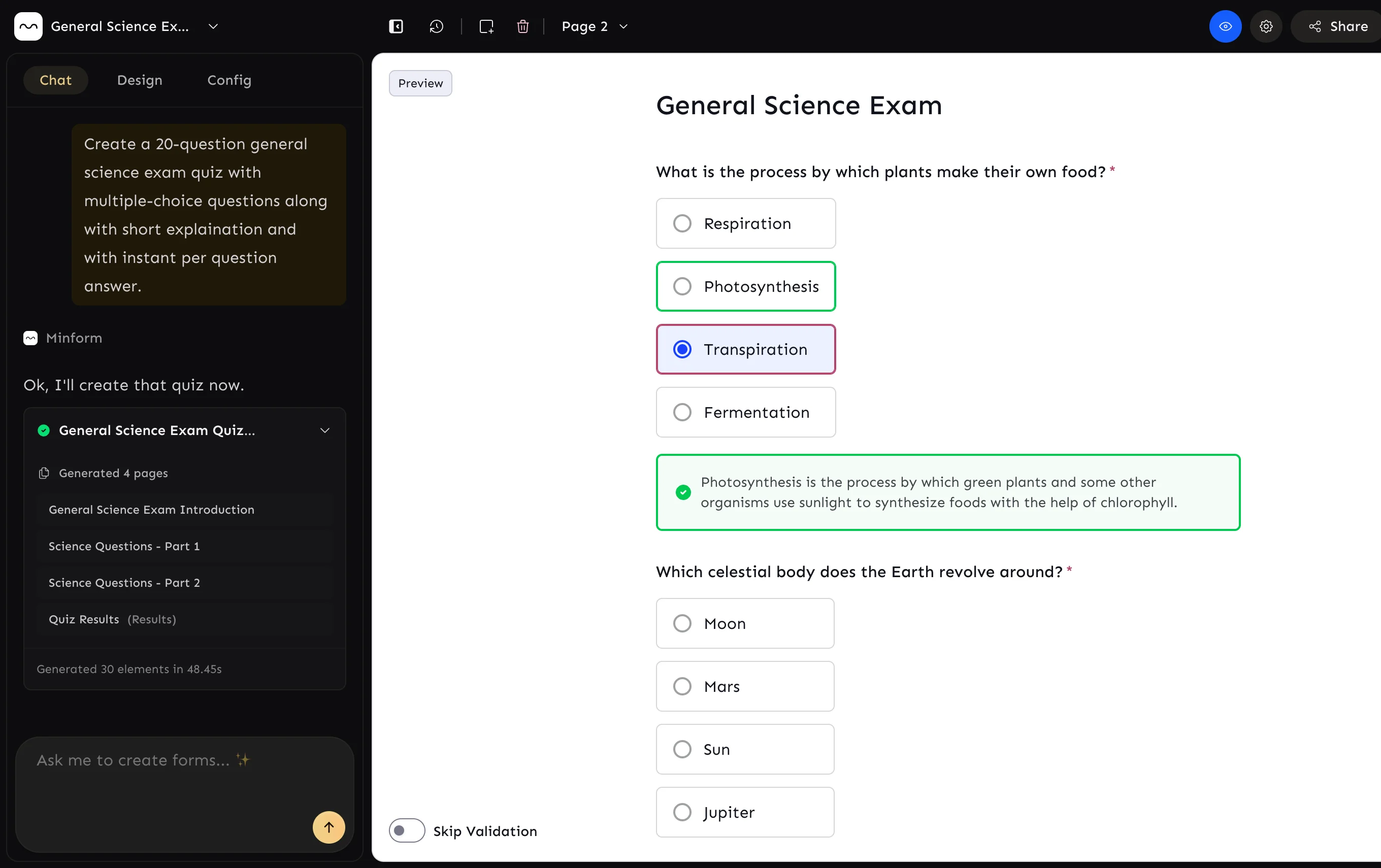Minform will instantly generate the quiz with questions, scores, and feedback already in place. In most cases, it is ready to use without any changes.