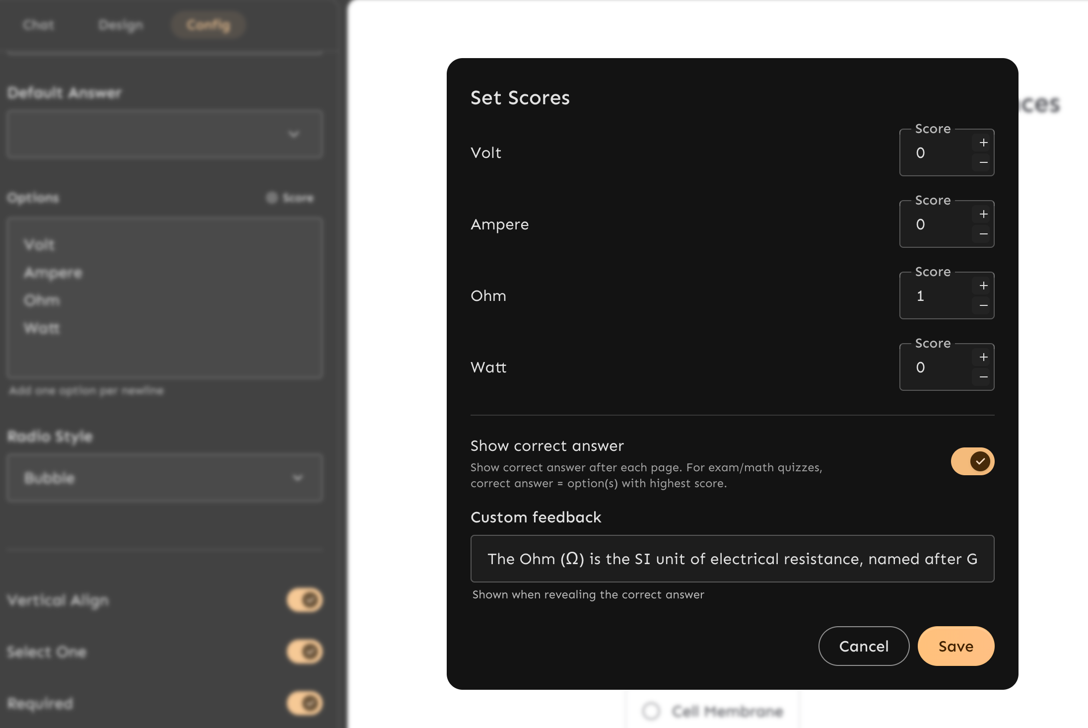 When you use the AI Quiz Maker to create a Knowledge or Exam style quiz, the AI will often ask if you want to show correct answers immediately after each question.